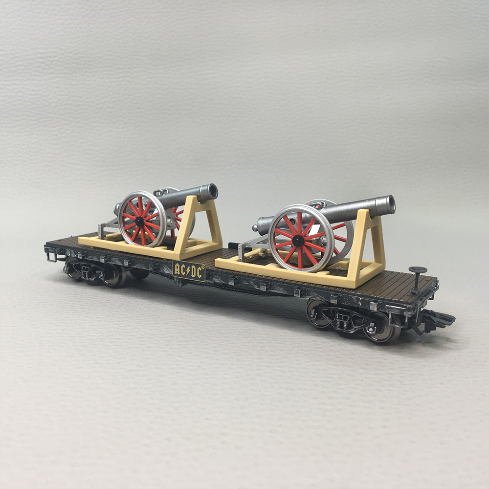 - Modèle réduit : Ce wagon à l'échelle H0 inspiré AC/DC, est conçu pour le système à courant alternatif 3 rails, AC. Miniatures des emblématiques canons d’AC/DC en laiton, accompagnées d’une patine de wagon entièrement réalisée à la main. Chaque pièce est unique. Livré dans une magnifique boite en métal et un support de présentation pour le wagon.