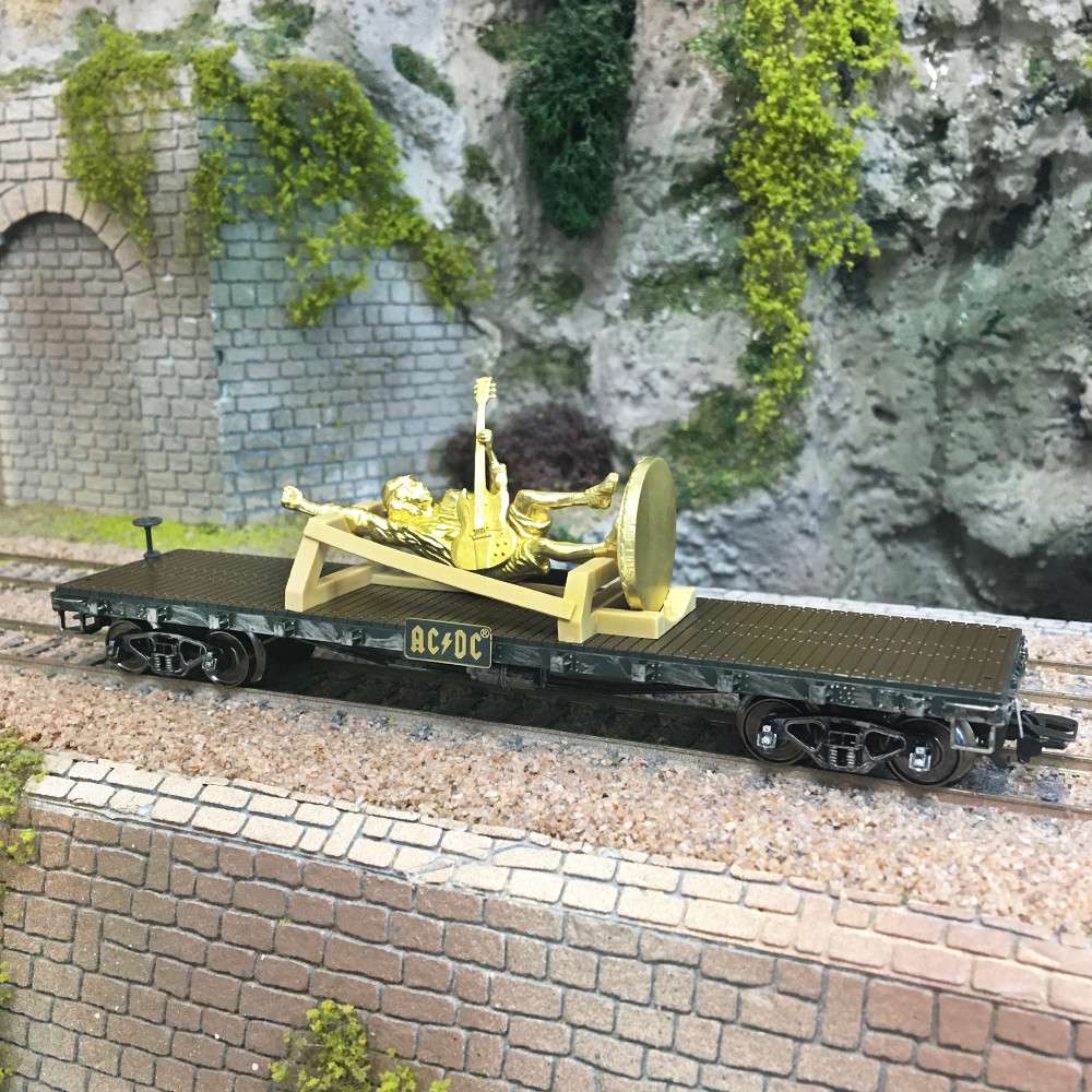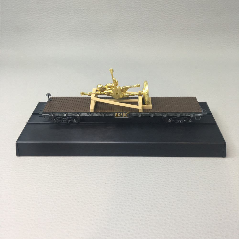 - Modèle réduit : Ce wagon à l'échelle H0 inspiré AC/DC, est conçu pour le système à courant alternatif 3 rails, AC. Fournis avec une statuette d'un guitariste en laiton, accompagnées d’une patine de wagon entièrement réalisée à la main. Chaque pièce est unique. Livré dans une magnifique boite en métal et un support de présentation pour le wagon.