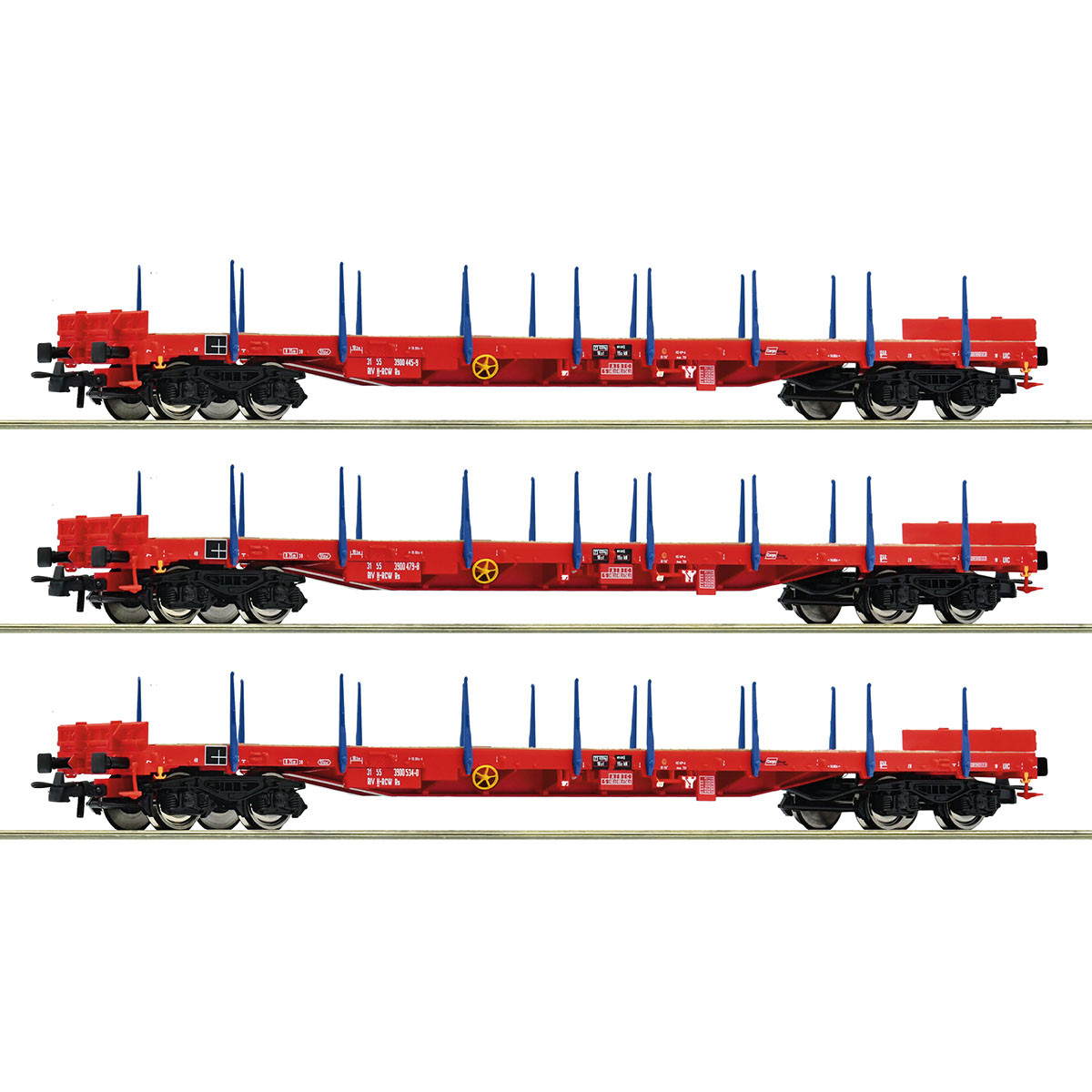 3 wagons plats à ranchers, type R, ÖBB, Ep. VI - ROCO 6600219 - HO 1/87