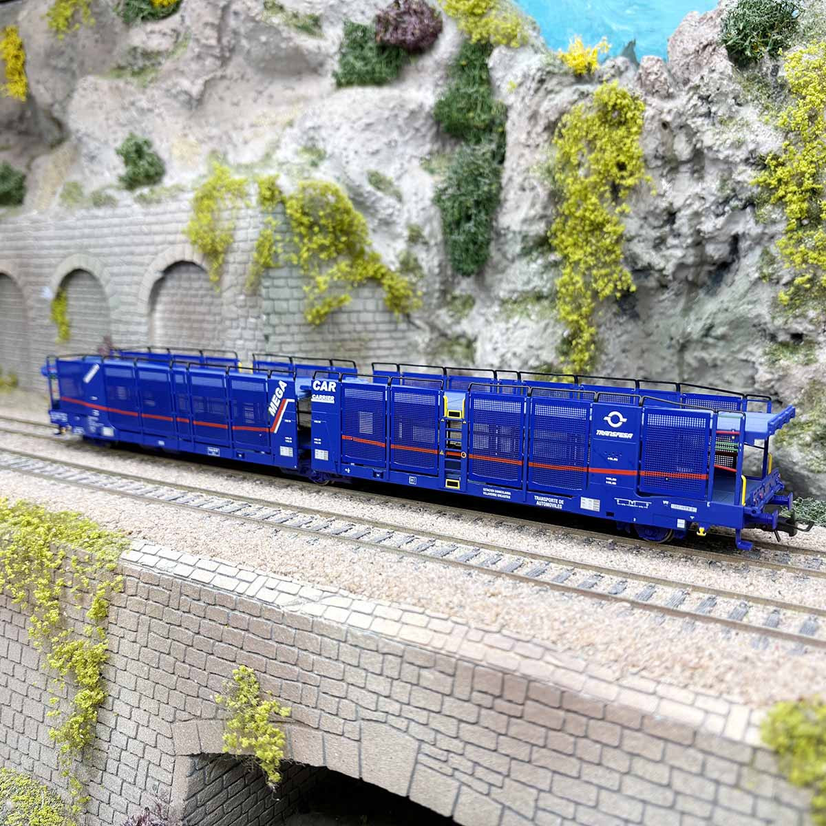 - Modèle réel : Wagon porte autos articulé à 3 essieux de type Laeks avec protections latérales. Utilisé par les différentes compagnies privés européennes pour le transport de véhicules. Modèle représenté à l'époque actuel.