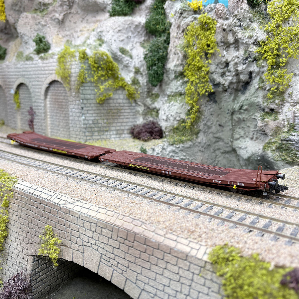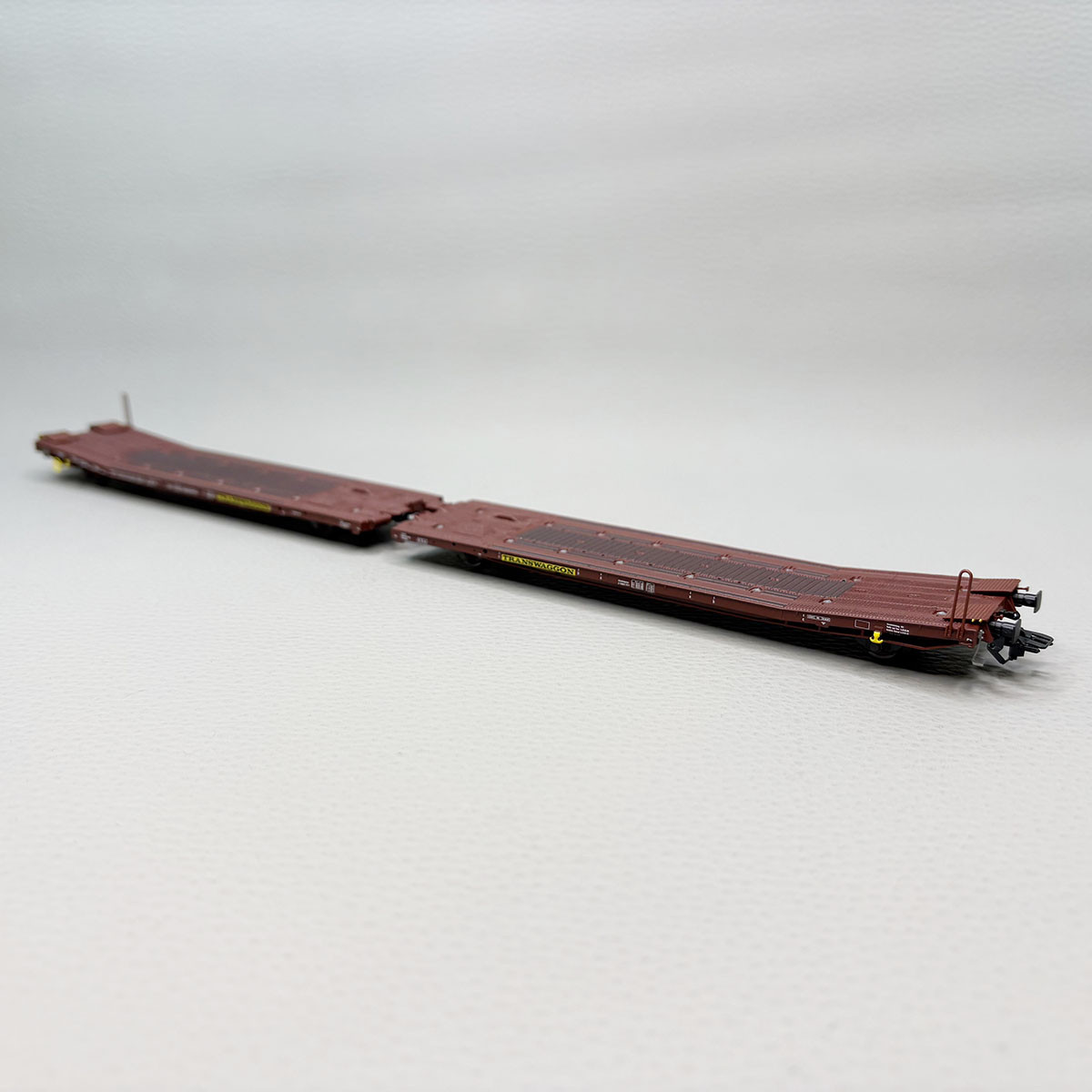 - Modèle réel : Wagon jumelé de type Laads 800B, plat deux essieux pour le transport de véhicules légers. Utilisé par la société allemande Transwaggon situé à Hambourg.