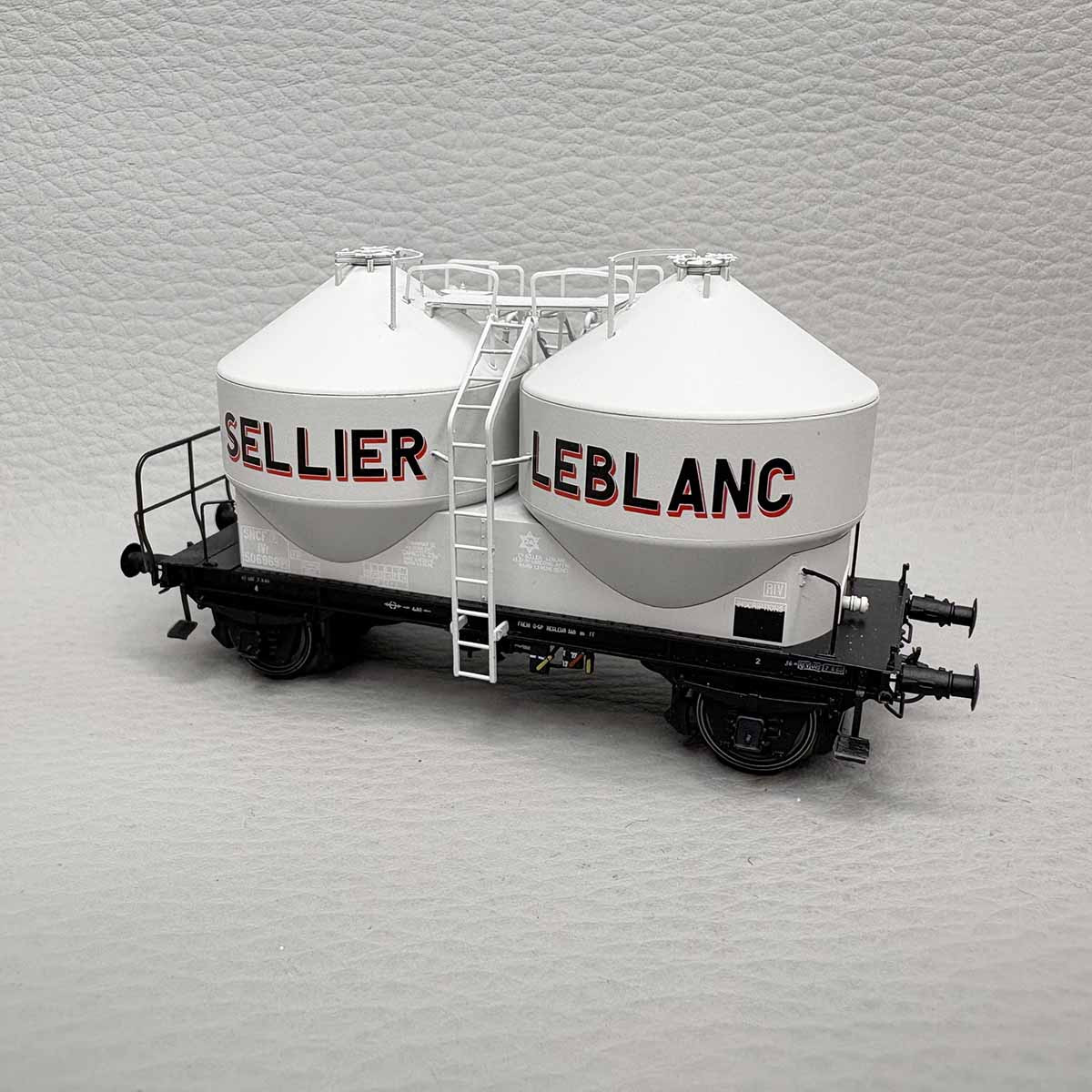 Wagon cimentier 2 essieux, décoration "Sellier Leblanc", SNCF