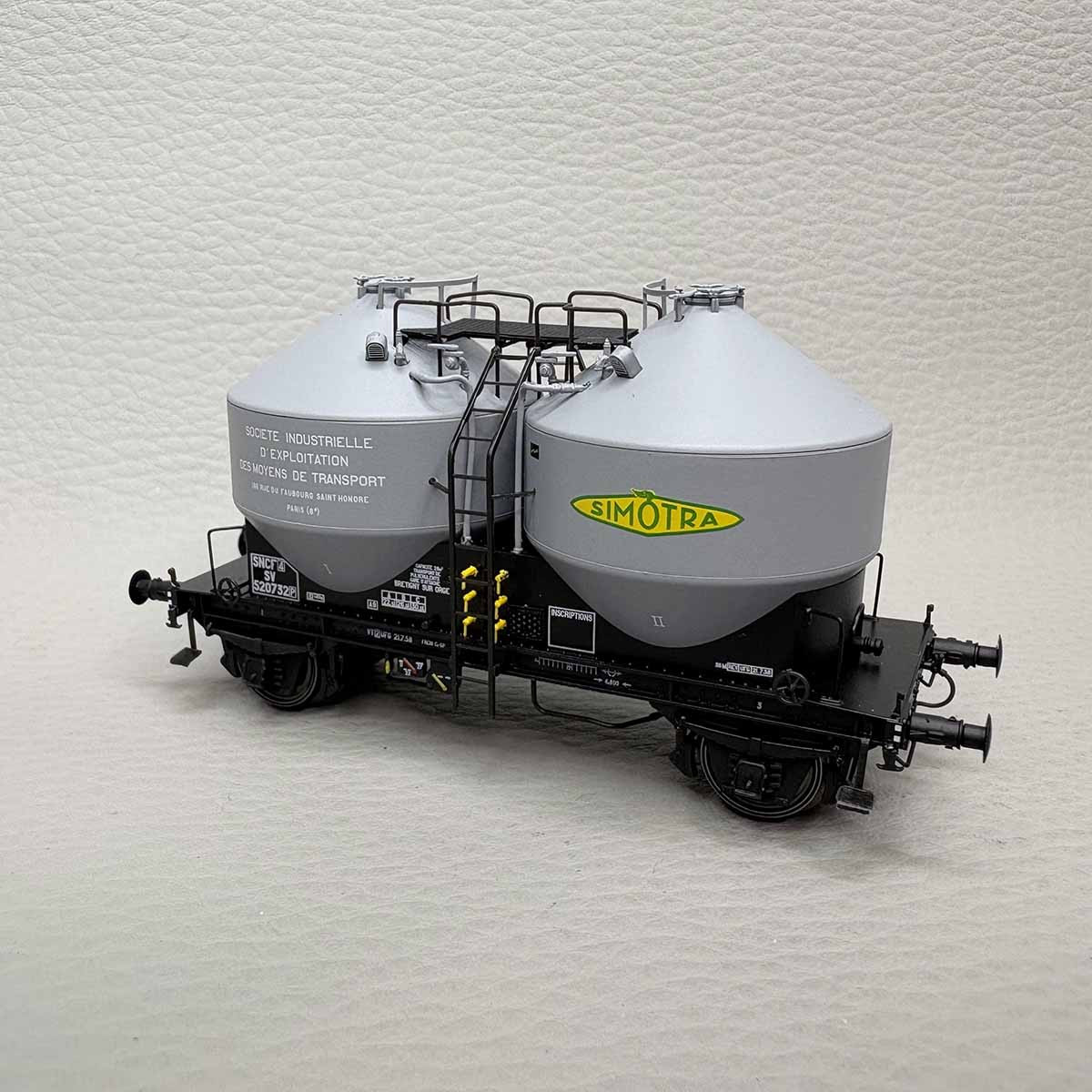 • Modèle réel Wagon dit cimentier à 2 essieux de type SV ou IV a été créer pour le transport de produits pulvérulents fin tel que le ciment. Equipé de deux silos verticaux à déchargement pneumatique. Il était utilisé par les principaux négociants de ce type de produit, principalement le ciment. Immatriculé à la SNCF, ce wagon a été utilisé pendant l'époque III et IV.