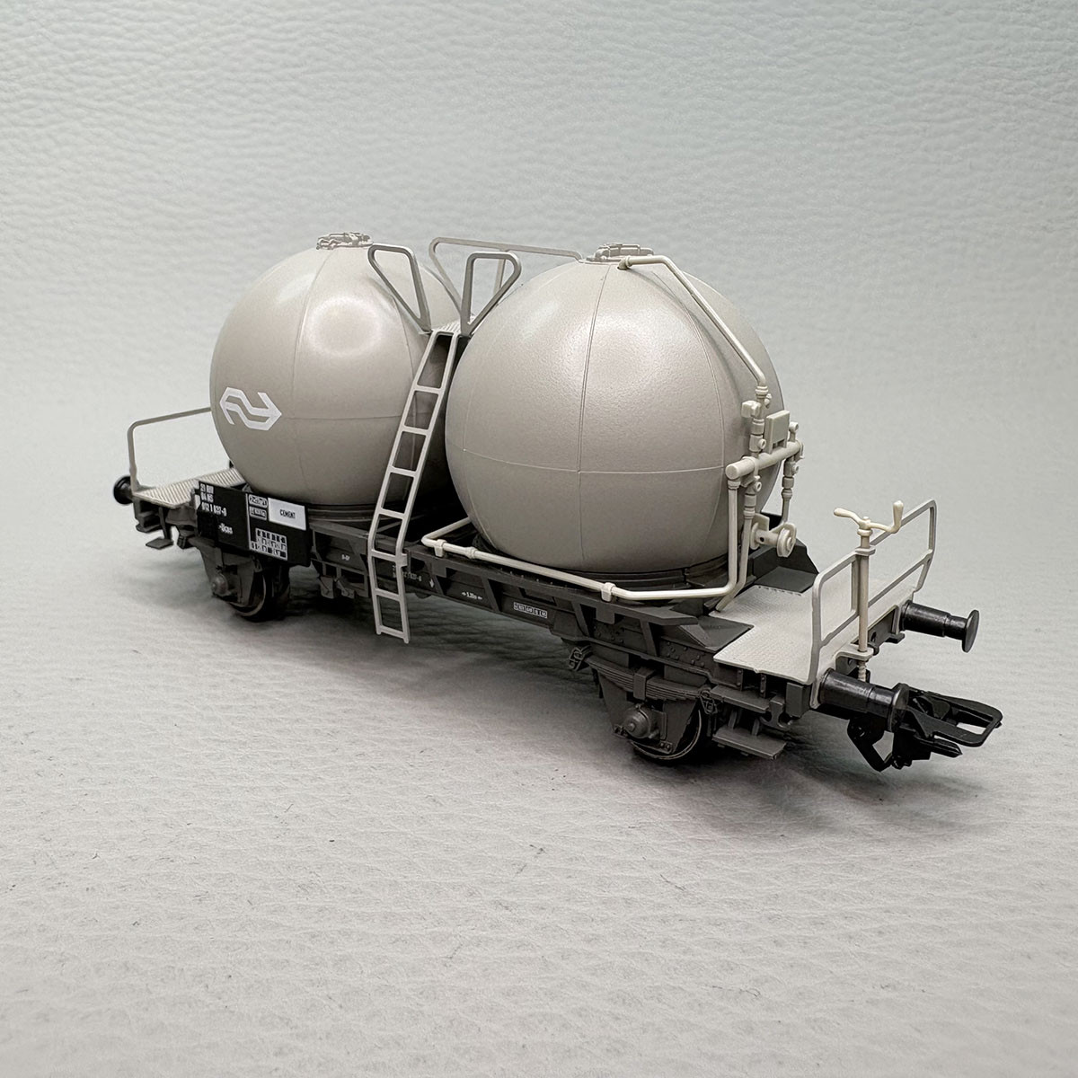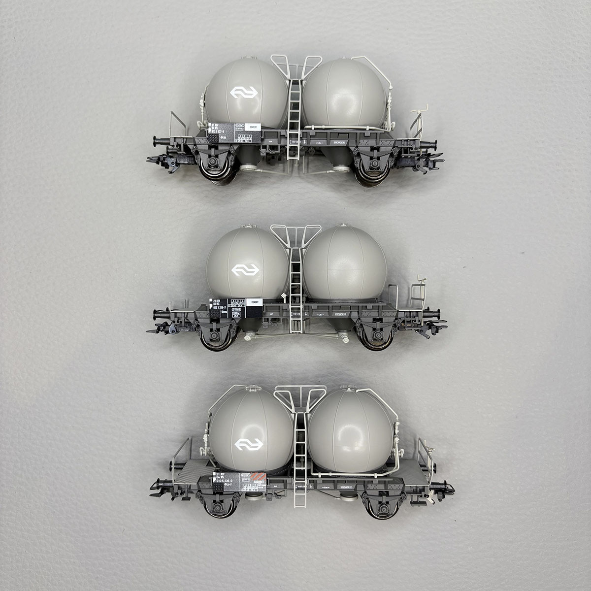 - Modèle réel : Ces wagons de type Uces et Ucs-y, avec leurs cuves sphériques servait pour le transport de ciment vers les années 1970. Ils étaient utilisés par les chemins de fer Hollandais, NS.